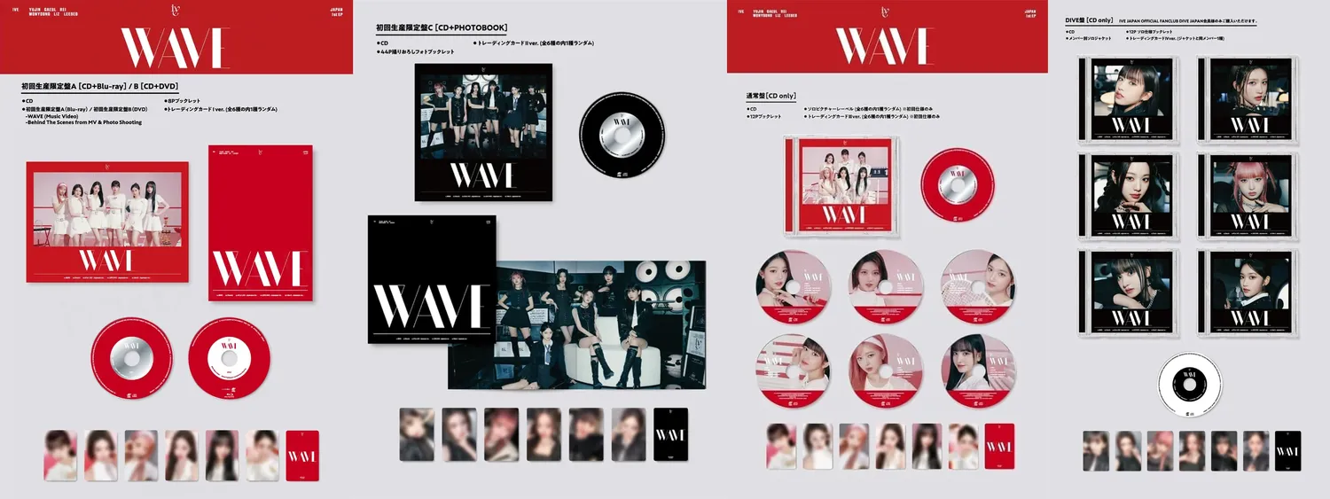 Continuing their unrivaled global momentum, IVE makes a striking return with their first Japanese EP, 'WAVE'. After dominating the Korean charts and establishing themselves as the voice of a new generation, the group sets out to captivate the Japanese music scene. This release perfectly captures IVE's elegant yet bold identity, bringing their signature message of self-love and confidence to an even wider audience.